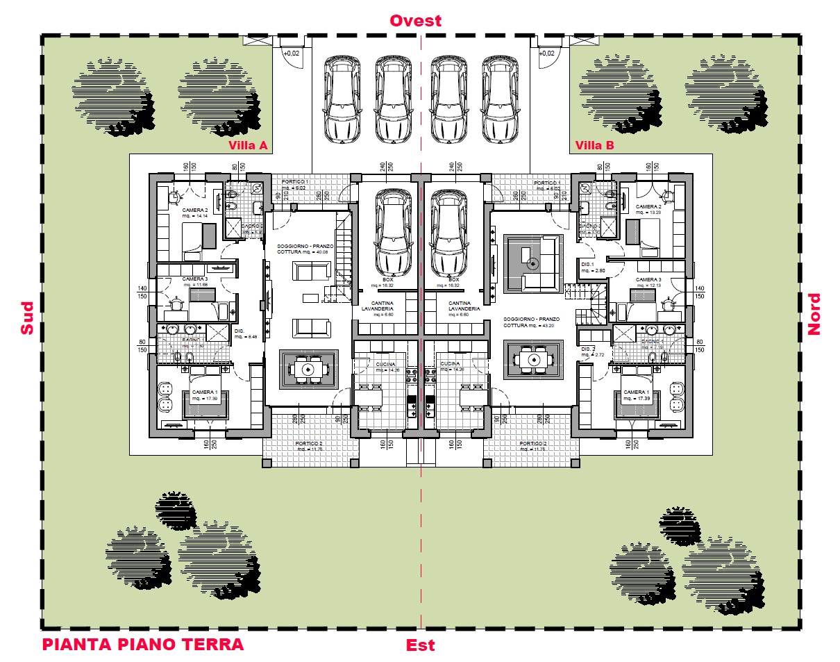 - Giardino privato esposto su tre lati, posto auto esterno su superficie drenante.