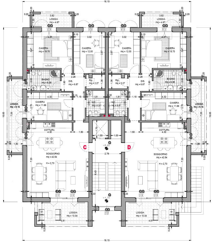- Tre camere da letto, di cui due con accesso ad una loggia dedicata, una con finestra